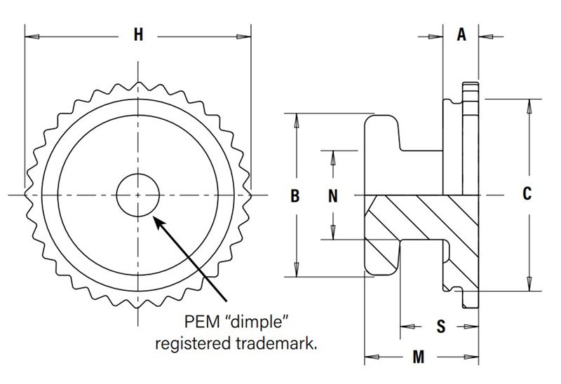 - Clinch feature mounts fastener permanently and flush or sub-flush into metal sheet